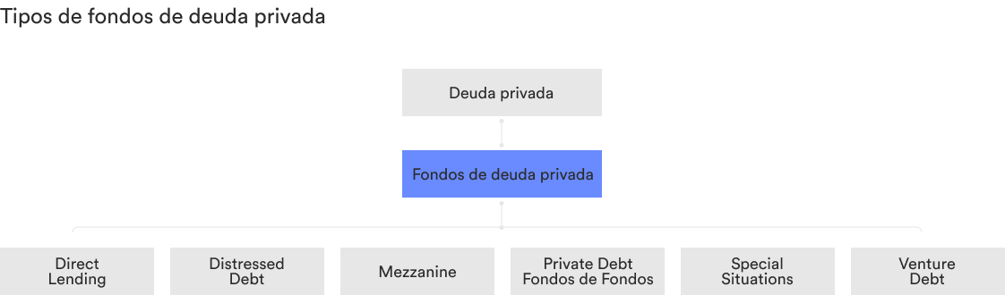 Los fondos de crédito privado se pueden clasificar de dos formas: por el tipo de estrategia (por ejemplo, préstamo directo o fondo de fondos) o por el tipo de deuda (deuda senior o mezzanie).